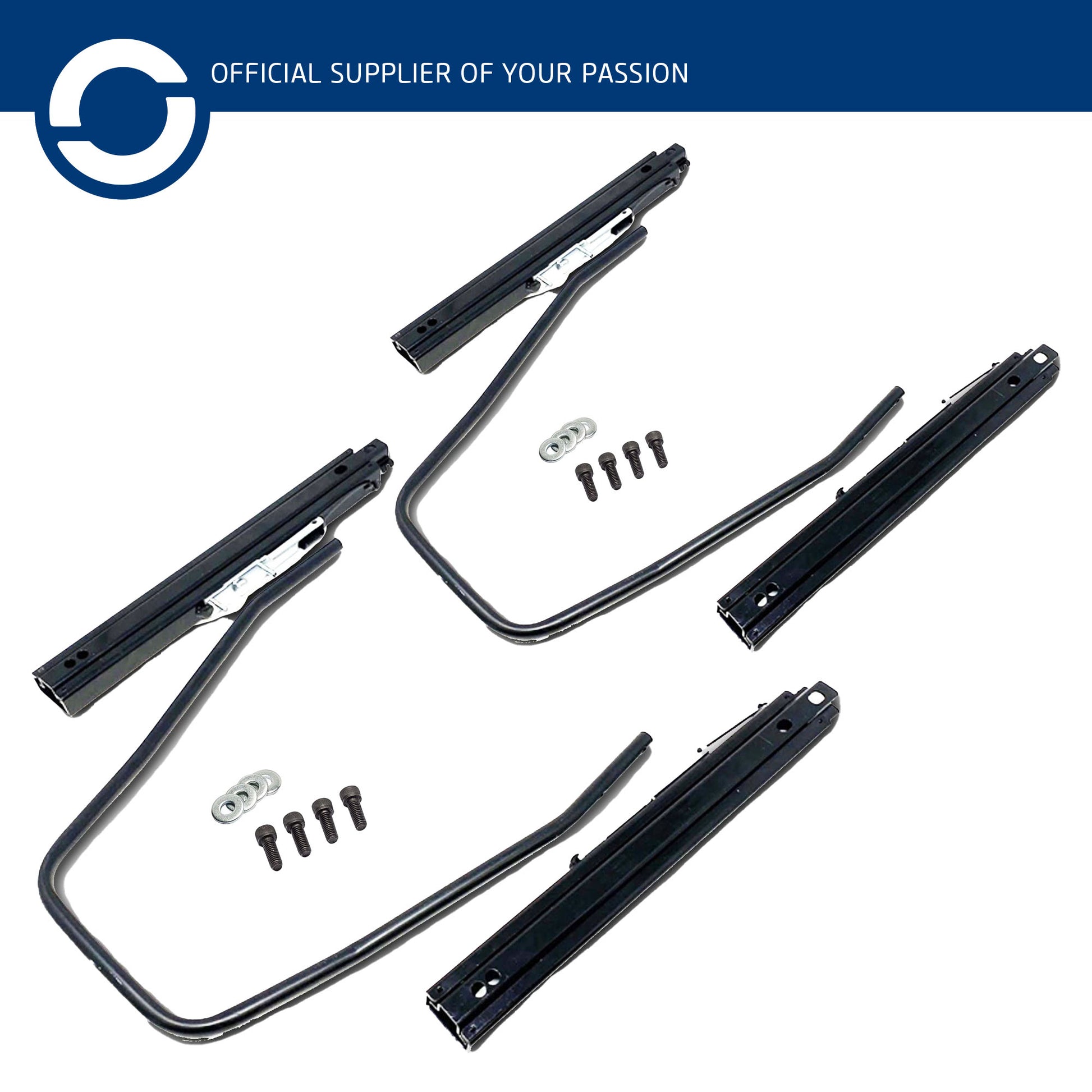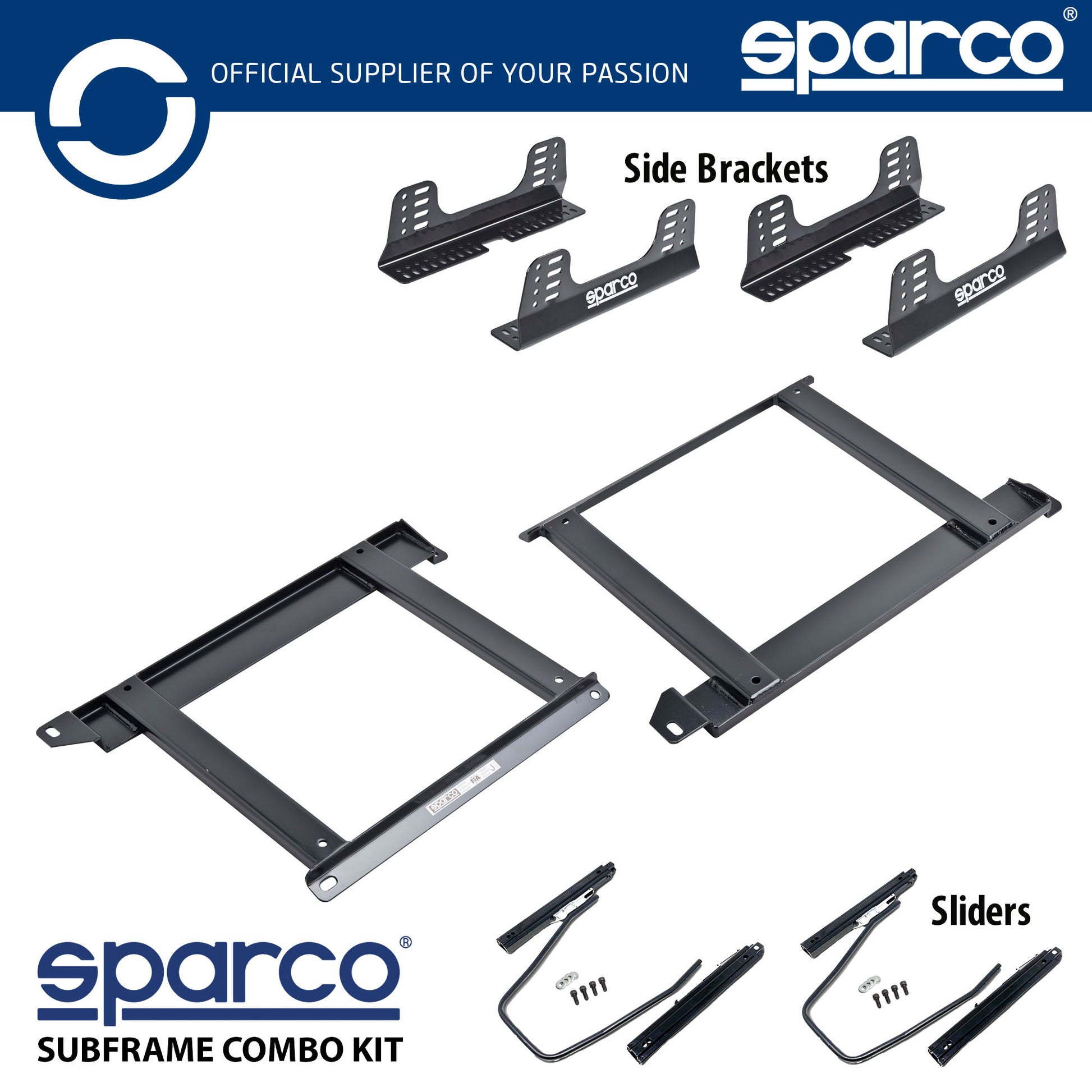 • 2 Packs of Sliding Runners to fit if required. Part Number 0049306 x 2 The subframes bolt directly into the chassis floor using the existing holes on the floor. Made from high strength steel and powder coated in gloss black. The side brackets bolt between the subframe and the seat. The sliding runners which are optional fit, allow the seat to be moved forwards and backwards if required. This mounting kit will allow you to install most racing seats which are side mounted from the likes of OMP, Sparco, Recaro, etc. All our racing seats are listed for sale in our store.